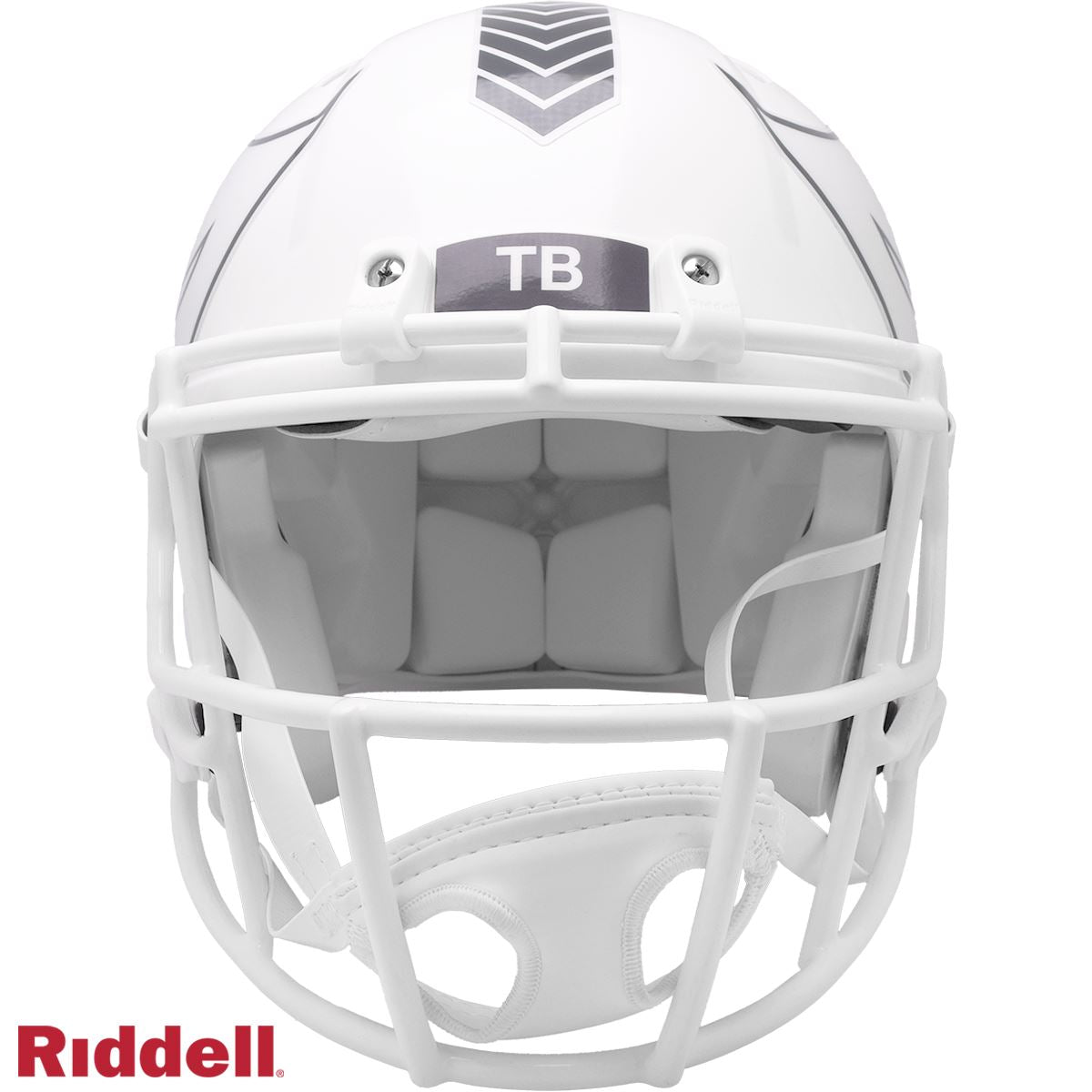 Riddell’s 2024 NFL Salute to Service helmets are inspired by those used by the military for decades, and are meant to honor the memory and selfless sacrifices of service members past and present. Each helmet features a gloss white shell and face mask. Decals and camouflage patterns match the official 2024 Salute to Service design elements and colorway. A chevron stripe pattern is used on every helmet, along with city name abbreviations on front bumpers, and Salute to Service back bumper decals. The camouflage wraparound decal includes the official Salute to Service ribbon and a full-color U.S. flag. Side decals are dark gray anthracite, one-color depictions of team logos.