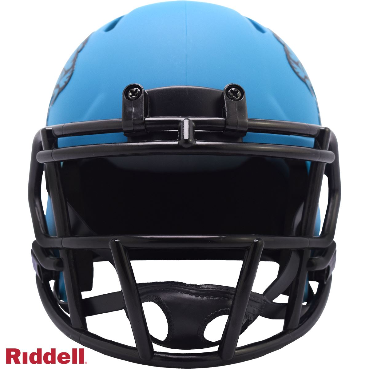 The Rave Collection puts a bright and colorful spin on NFL helmet design. Each helmet features brightly colored matte-finish shells, Matte one-color logo treatments matching the matte-finish shell and all black parts (facemask, chinstrap, buckles, padding, and bumpers). Based on one of the most popular on-field designs, this collectible Speed Mini football helmet is made specifically for fans of the Hall of Fame. At approx. 5.5 in. tall, this half-scale display helmet is perfect for all football fans and great for autographs. The helmet features a mini size Speed shell, the S2BD-SW-SP face mask and a 4-point chinstrap. The perfect collectible or gift!