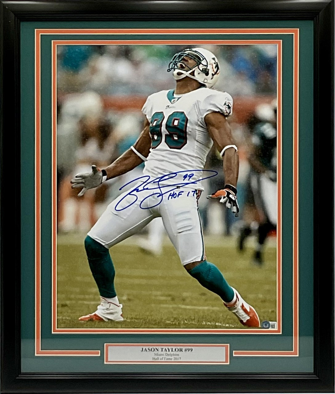 Jason Taylor Miami Dolphins "HOF 17" Autographed 16x20 Photo Framed