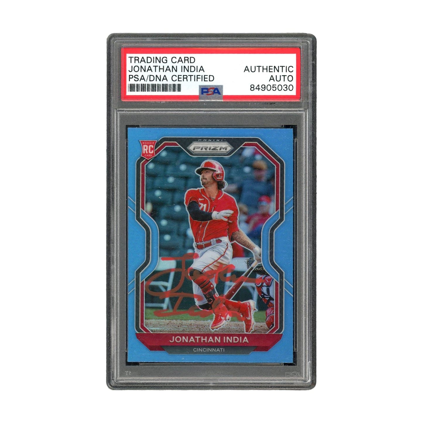 Jonathan India Autographed 2021 Panini Blue Prizm Authentic Auto - PSA