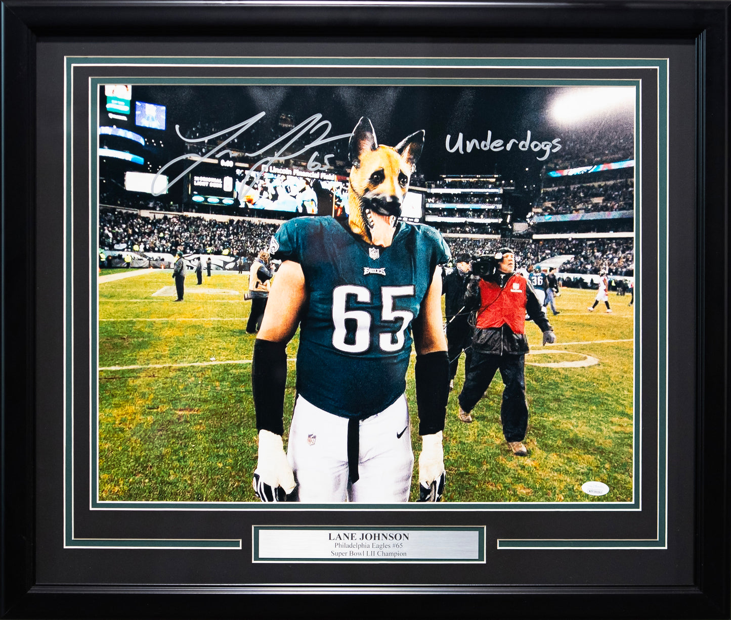 Lane Johnson 16x20 Autographed "Dogmask" Inscribed "Underdogs" Framed