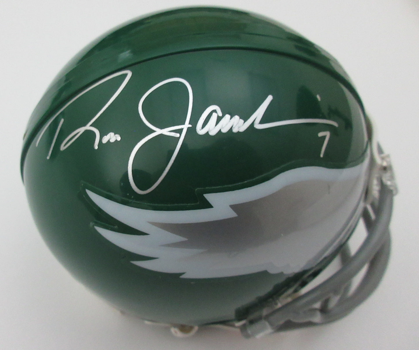 This Philadelphia Eagles mini-helmet is personally autographed by former Quarterback Ron Jaworski. Ron lead the the Philadelphia Eagles to the 1980 Super Bowl against the Oakland Raiders. This mini-helmet comes with a Sports Vault certificate of authenticity.