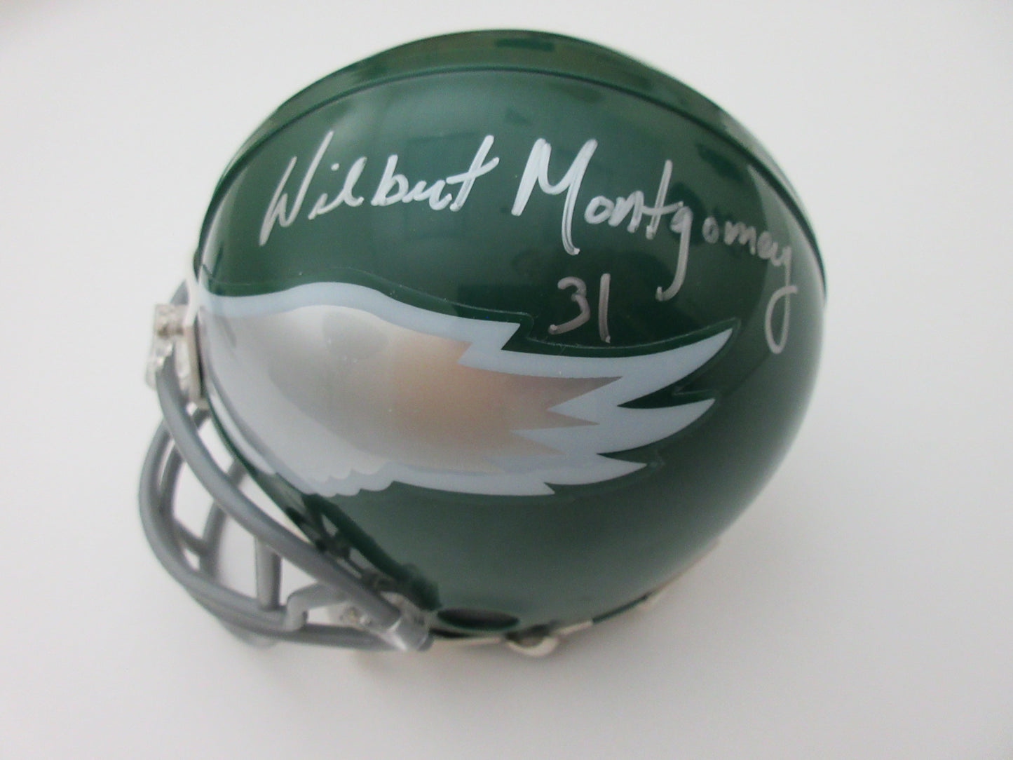 This Philadelphia Eagles mini helmet is personally autographed by former running back Wilbert Montgomery. This mini helmet comes with a JSA certificate of authenticity.
